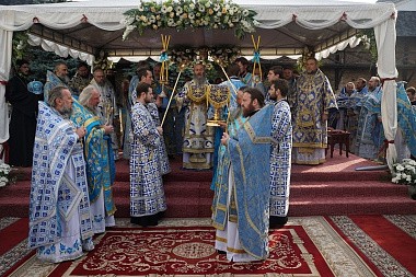По окончании Литургии был совершен крестный ход вокруг монастыря.