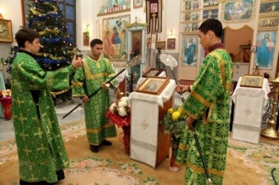 Владыке сослужили: иеромонах Спиридон (Поздеев), диакон Феодор Бураков, диакон Петр Гнатик.