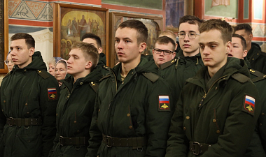 За богослужением молились военнослужащие штаба Ракетных войск стратегического назначения РФ, сестры Преображенского скита московского подворья Пюхтицкого Успенского ставропигиального женского монастыря в селе Юдино Одинцовского района Московской области, прихожане храма.