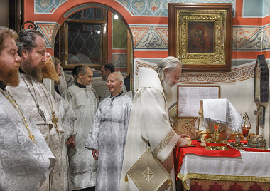 Его Высокопреосвященству сослужило духовенство Московской епархии.