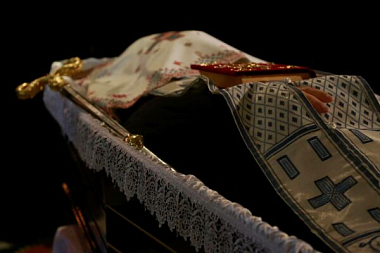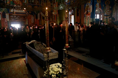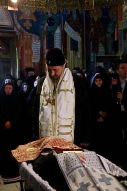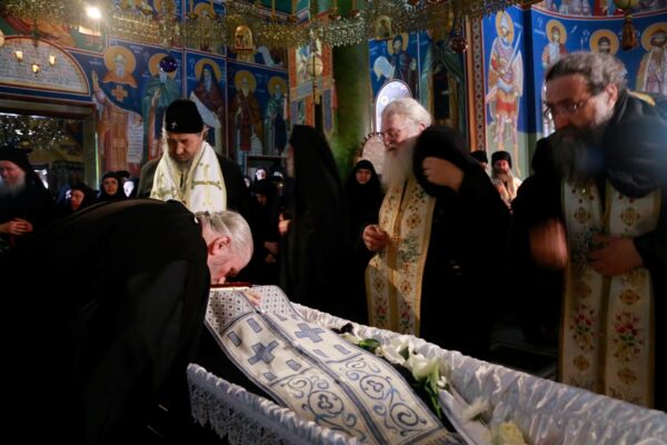 Архиереи, клирики, монахи и монахини, также множество мирян поклонились почившему старцу, в последний раз взяв у него благословение.
