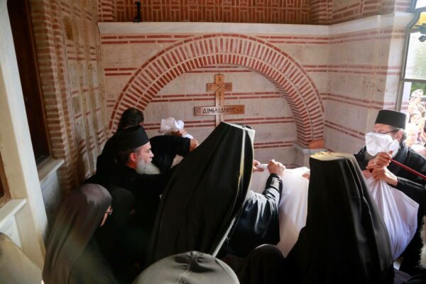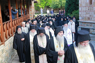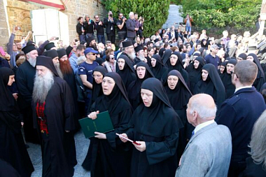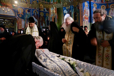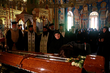 В молчании и молитве прощалось со своим духовным отцом множество духовных чад, иерархов, монахов, клириков и мирян, начавших 10 мая прибывать в монастырь Ормилию, где провел последние годы своей жизни схиархимандрит Эмилиан (Вафидис), проигумен афонского монастыря Симонопетра и основатель монастыря Ормилия.