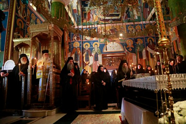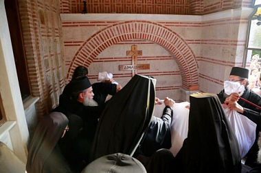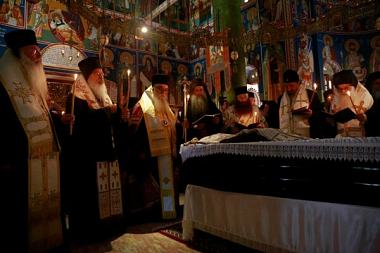 Старец Продром, игумен священной обители Великой Лавры, представляя Святогорскую монашескую общину, произнес надгробное слово.