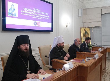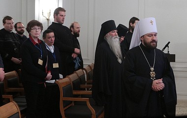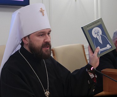 Митрополит Иларион предложил вниманию участников сборник трудов первой конференции о преподобном Исааке Сирине и сообщил, что готовятся к изданию материалы форума, посвященного преподобному Симеону Новому Богослову.