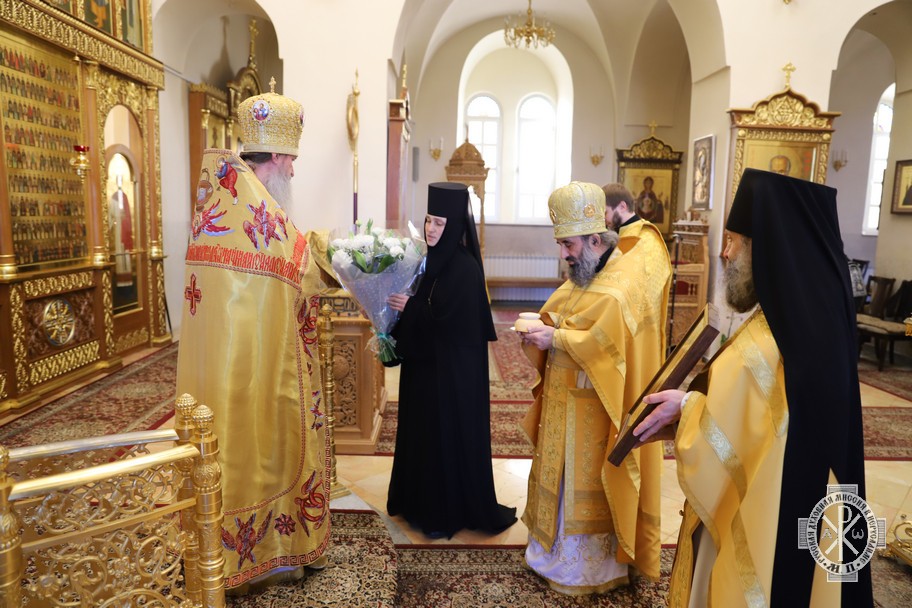 По окончании богослужения процессия духовенства и сестер обители с пением праздничных песнопений проследовала в Казанский храм, где архимандрит Александр поклонился чудотворному Казанскому образу Божией Матери, после чего в монастырской трапезной состоялся праздничный прием.