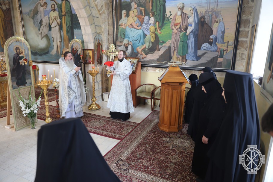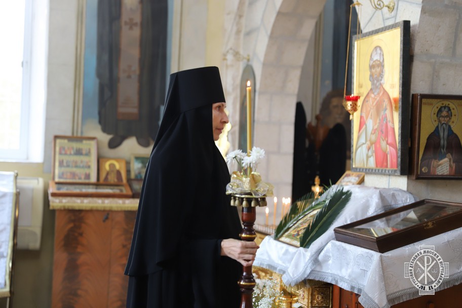 За богослужением молились старшая сестра подворья монахиня Лукина (Ганичева) и сестры Горненской женской обители, несущие свои послушания на иерихонском подворье и в Русской Духовной Миссии.
