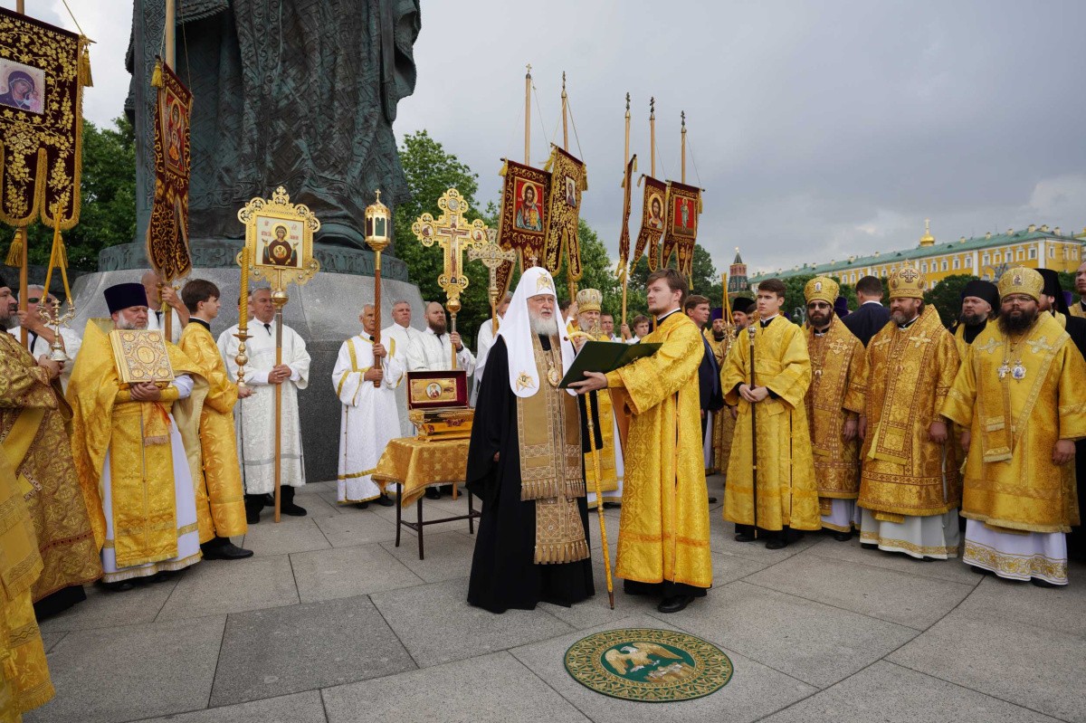28 июля 2022 года, в день памяти святого равноапостольного великого князя Владимира и церковно-государственного праздника Крещения Руси, по окончании Божественной литургии в Патриаршем Успенском соборе Московского Кремля, Святейший Патриарх Московский и всея Руси Кирилл возглавил крестный ход c частицей мощей и иконой равноапостольного князя Владимира через Боровицкие ворота к памятнику крестителю Руси на Боровицкой площади.