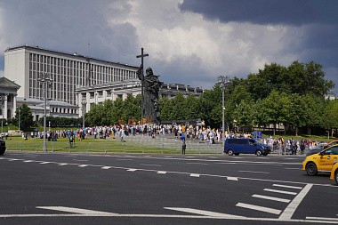 У памятника, где собрались клирики московских и подмосковных храмов, жители и гости столицы, было совершено молебное пение святому равноапостольному князю Владимиру.