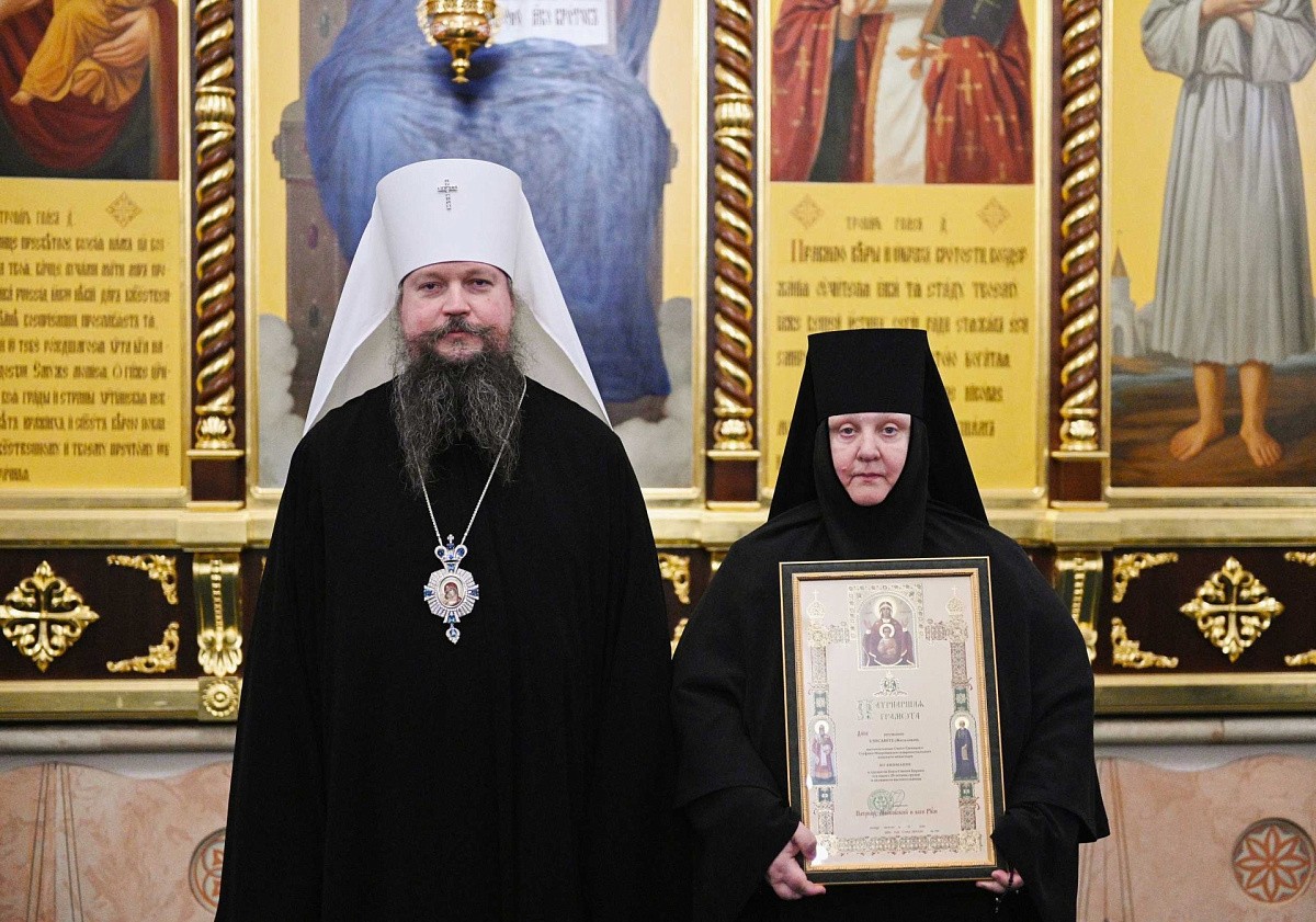 – игумения Елисавета (Жегалова), настоятельница Свято-Троицкого Стефано-Махрищского ставропигиального женского монастыря, – во внимание к трудам на благо Святой Церкви и в связи с 25-летием трудов в должности настоятельницы.