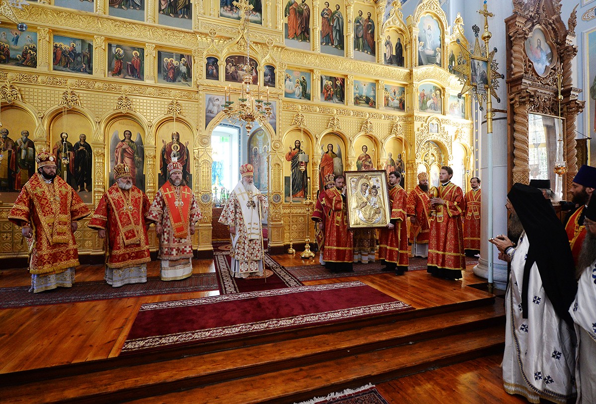 В дар собору Святейший Патриарх Кирилл передал Иверскую икону Божией Матери и пасхальное яйцо.