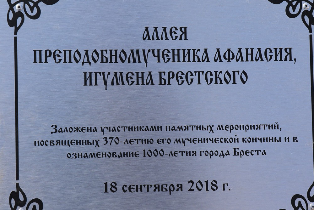 Затем митрополит Павел и все участники торжеств проследовали к строящемуся храму Рождества Христова, на прилегающей территории которого состоялась закладка аллеи и посадка деревьев – сибирских кедров. Это действо было посвящено 370-летию со дня мученической кончины святого Афанасия Брестского и состоялось в ознаменование предстоящего юбилея – 1000-летия со времени основания города Бреста.