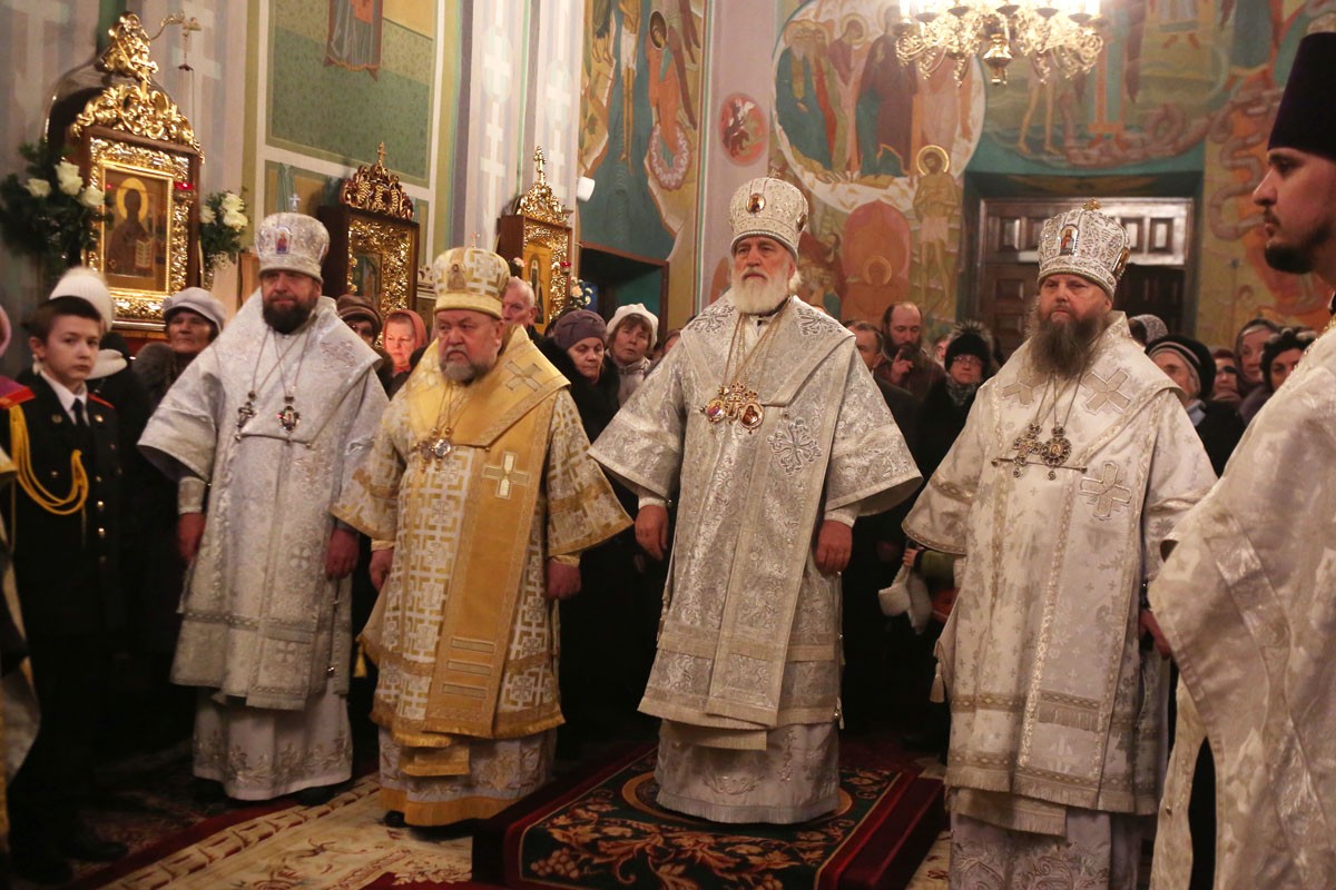 За богослужением архипастырям сослужили клирики Рождество-Богородичного монастыря и приглашенные гости в священном сане.