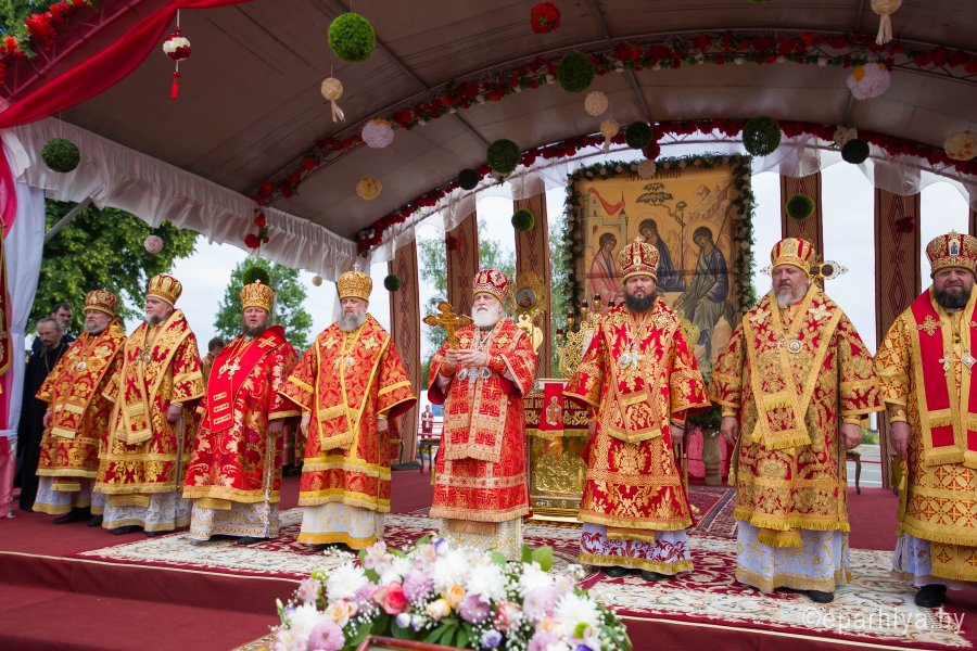 Патриаршему экзарху всея Беларуси сослужили: митрополит Житомирский и Новоград-Волынский Никодим, архиепископ Брестский и Кобринский Иоанн, архиепископ Гомельский и Жлобинский Стефан, епископ Борисовский и Марьиногорский Вениамин, епископ Золотоношский Иоанн, епископ Вяземский и Гагаринский Сергий, епископ Клинцовский и Трубчевский Владимир, епископ Лидский и Сморгонский Порфирий, епископ Боровлянский Игнатий, а также наместник Гомельского Никольского мужского монастыря, председатель Синодальной комиссии по канонизации святых Белорусской Православной Церкви архимандрит Амвросий (Шевцов), секретарь Минской епархии протоиерей Андрей Волков, благочинные, клирики Гомельской епархии и приглашенные гости в священном сане.