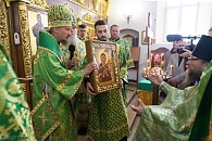Его Высокопреосвященству сослужила братия подворья в священном сане.