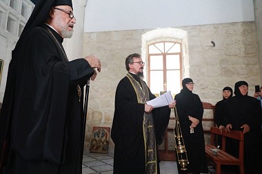 В монастыре святой равноапостольной Феклы в Маалюле гостей встретил епископ Седнайский Лука (Антиохийская Православная Церковь) и сестры обители, возвратившиеся в нее после освобождения из террористического плена.