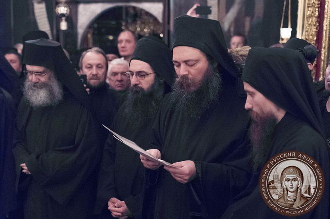 По совершении чина интронизации новопоставленный игумен Пантелеимонова монастыря священноархимандрит Евлогий обратился к собравшимся с ответным словом.