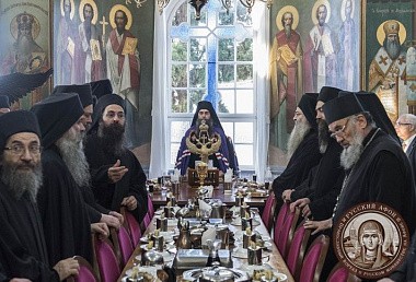 По совершении часов поставляемый иеромонах Евлогий был подведен к членам Кинотской Эпитропии. Архиграмматеос иеромонах Феофил зачитал послание Священного Кинота новоизбранному игумену Русского монастыря со всей во Христе братией.