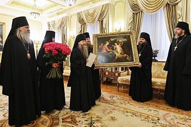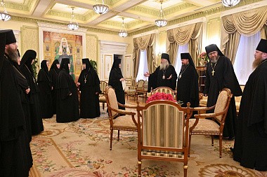 Делегацию монашествующих возглавил председатель Синодального отдела по монастырям и монашеству архиепископ Каширский Феогност.