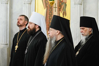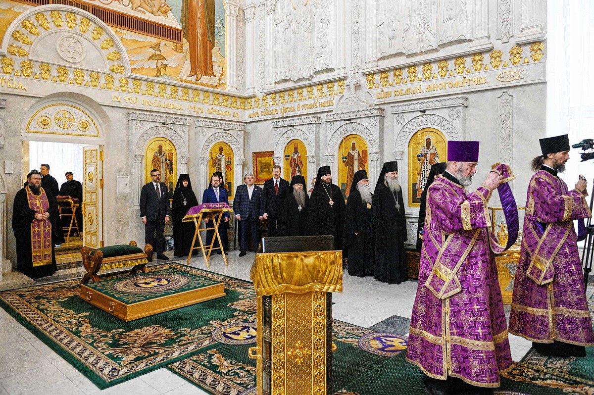 Были вознесены молитвы о упокоении душ приснопамятных митрополита Никодима (Ротова), благочестивых родителей Святейшего Патриарха Кирилла протоиерея Михаила и Раисы Гундяевых и всех от века почивших православных.