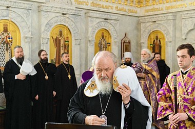 14 марта 2020 года, в субботу 2-й седмицы Великого поста, Святейший Патриарх Московский и всея Руси Кирилл совершил Божественную литургию иерейским чином в домовом храме Всех святых, в земле Российской просиявших, Патриаршей и Синодальной резиденции в Даниловом ставропигиальном мужском монастыре.