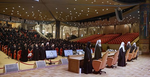 Предстоятель Церкви обратился к участникам Собрания с такими словами: «Всех вас сердечно приветствую и выражаю радость по поводу нашей встречи. Время от времени Патриарх должен встречаться с представителями монашества – во-первых, сказать о том, что на душе лежит, но также и самому что-то услышать, потому что многое формируется в сознании Патриарха от того, что он получает со стороны как духовенства, так и монашествующих. Вы прибыли из разных епархий нашей Церкви, и, конечно, замечательно, что встречи в таком формате у нас проходят практически ежегодно». Затем Предстоятель Церкви зачитал основной доклад.
