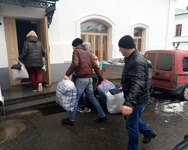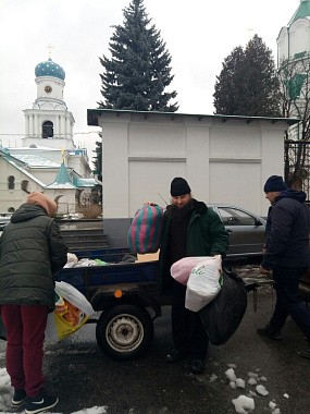 Откликнулись на новую беду и простые люди. Сегодня в обитель был доставлен гуманитарный груз – продукты питания, обувь, одежда, памперсы для детей, медикаменты, собранный жителями Бахмутского и Краматорского районов.