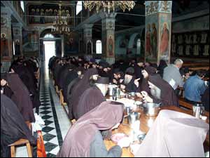 В этот день по окончании Всенощного бдения ранняя Литургия служилась в Петропавловском храме, расположенном на территории монастыря и где упокаиваются братия.