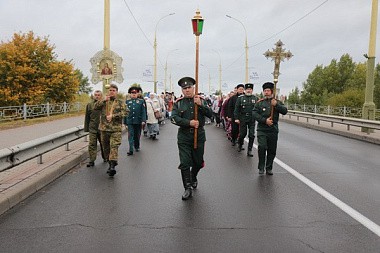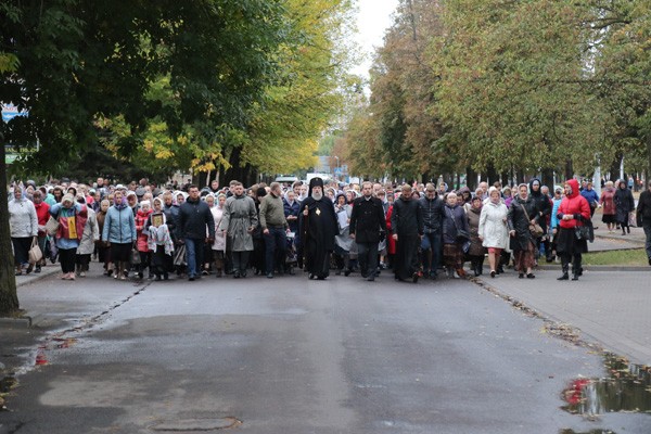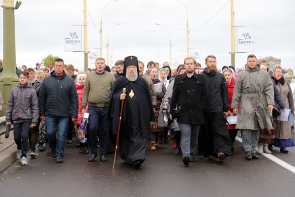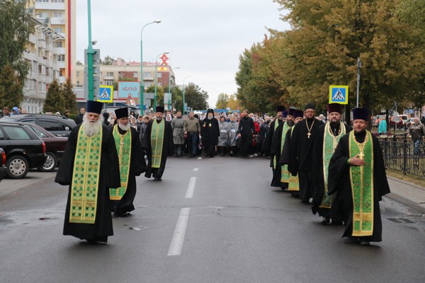 У памятника святому Афанасию Брестскому, установленного рядом с кафедральным собором, архиерей прочитал молитву преподобномученику Афанасию. В пути к торжественному шествию присоединились крестные ходы из женского монастыря Рождества Пресвятой Богородицы, что на Госпитальном острове Брестской крепости, а также из прихода храма Рождества Христова г. Бреста.