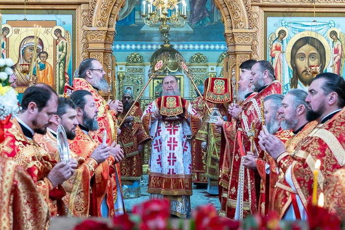 В завершение Литургии состоялось славление светлому Христову Воскресению и Пресвятой Богородице, после чего глава Митрополичьего округа произнес возглас «Христос воскресе!» на разных языках – древних и современных. Митрополит Александр поздравил епископов, духовенство, монашествующих и мирян с сугубыми торжествами – Светлым Христовым Воскресением и престольным праздником обители.