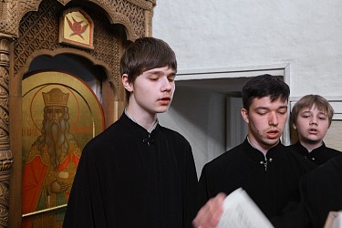 Богослужебные песнопения исполнил хор Афонского подворья.