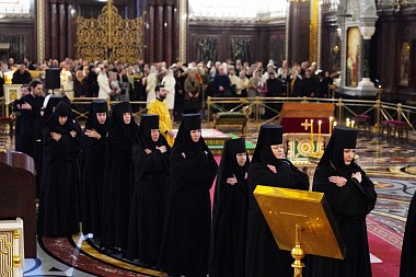 Богослужебные песнопения исполнили Патриарший хор Храма Христа Спасителя под управлением И.Б. Толкачева и братский хор Свято-Троицкой Сергиевой лавры под управлением иеромонаха Нестора (Волкова).