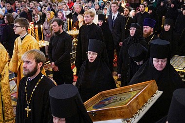 В храме также находились председатель Синодального отдела по взаимоотношениям Церкви с обществом и СМИ, временно исполняющий обязанности руководителя Пресс-службы Патриарха Московского и всея Руси В.Р. Легойда, духовенство, игумении женских монастырей, монашествующие и миряне, пришедшие помолиться вместе со Святейшим Патриархом Кириллом в день рождения Его Святейшества.