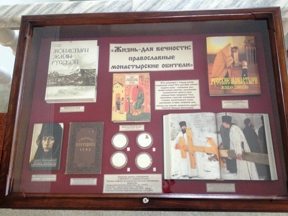 В духовно-просветительском центре «Царский» г. Екатеринбурга в рамках Дней православной книги открылась музейно-библиотечная выставка «Жизнь для вечности: православные монастырские обители». На выставке представлены книжные издания о православных монастырях России и ближнего зарубежья из фонда библиотеки «Державная», фотографии из коллекции Э.Э. Лайковского и монеты с изображением православных храмов из коллекции Клуба нумизматов.