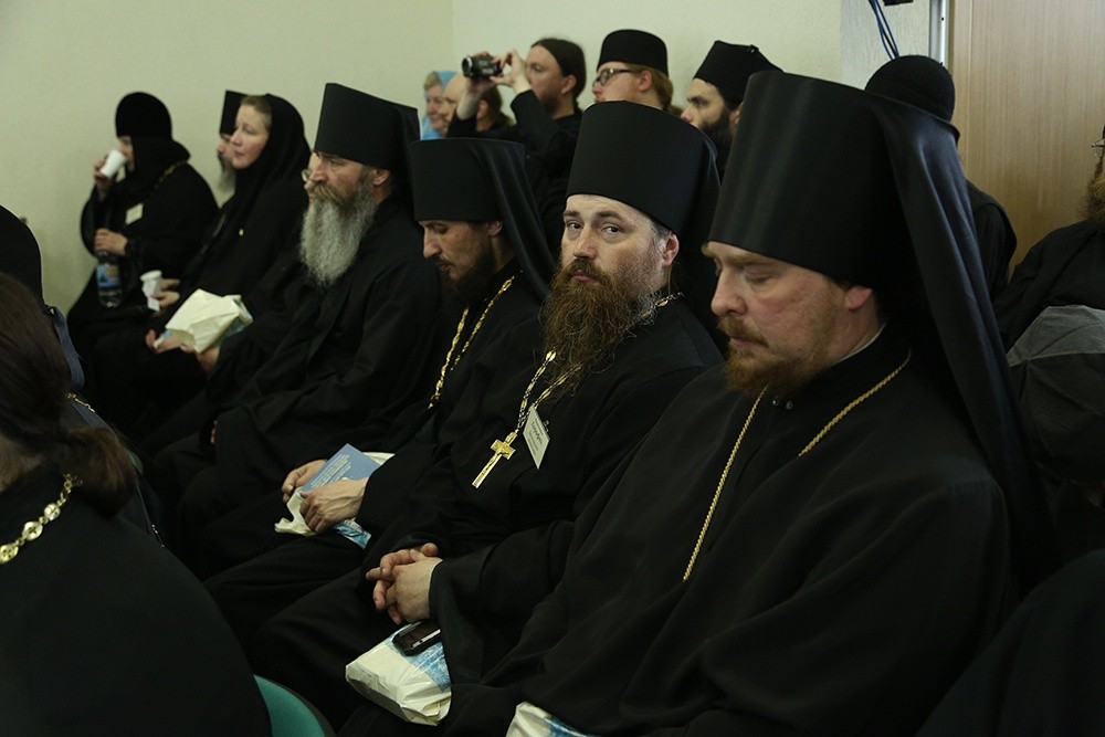Второй доклад представил схиархимандрит Авраам (Рейдман), духовник Александро-Невского Ново-Тихвинского женского монастыря и Свято-Косьминской мужской пустыни, автор книг о христианском подвижничестве. Так же, как и предыдущий докладчик, отец Авраам после своего слова ответил на вопросы аудитории.