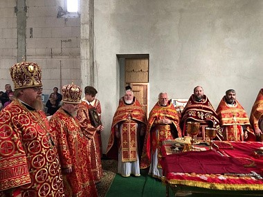 В главном храме обители во имя вмч. Георгия Победоносца архиепископ Тихон и архиепископ Бакинский и Азербайджанский Александр возглавили Божественную литургию.