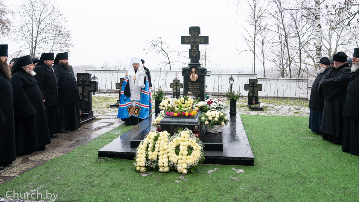 Затем все проследовали на малое братское кладбище за Крестовоздвиженским храмом, где у могилы владыки Филарета митрополит Вениамин совершил заупокойную литию и чин освящения памятника на месте упокоения первого Патриаршего экзарха всея Беларуси.