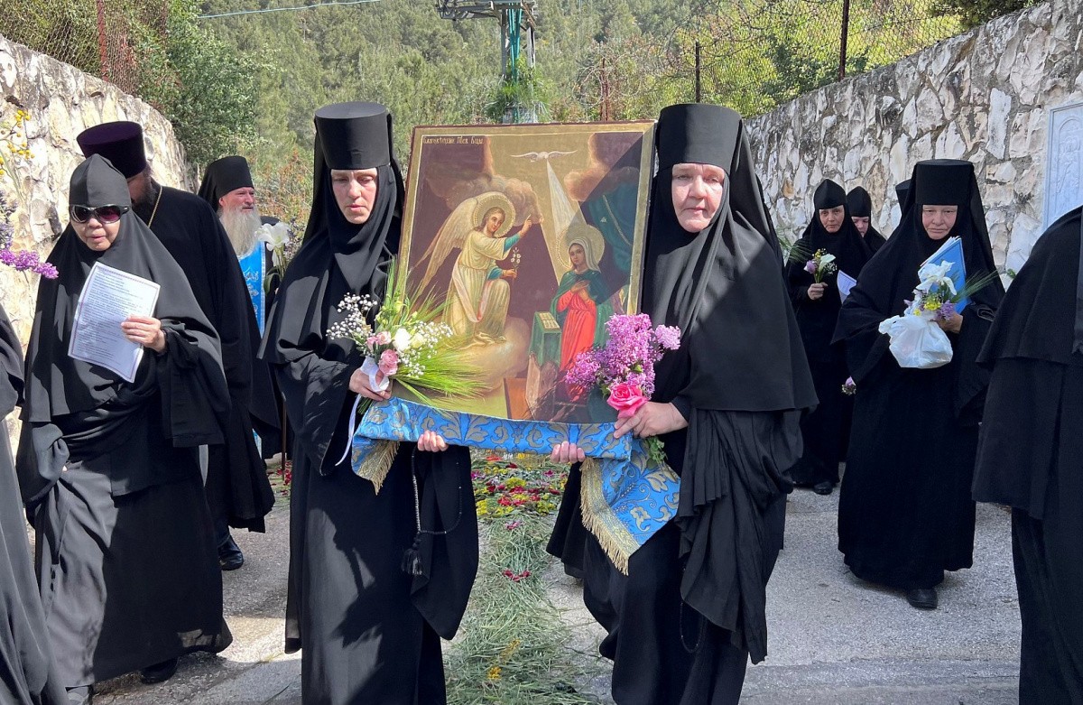 11 апреля 2022 года митрополит Исихий в Троицком соборе Иерусалима возглавил молебен перед чтимой иконой Благовещения, после чего образ в сопровождении духовенства и сестер Миссии был перенесен в Горненскую обитель.