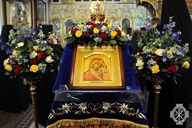 По окончании Литургии был совершен молебен перед чудотворной Казанской иконой Божией Матери с крестным ходом и чтением акафиста.