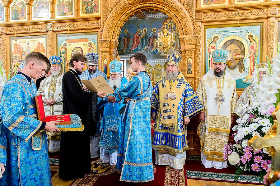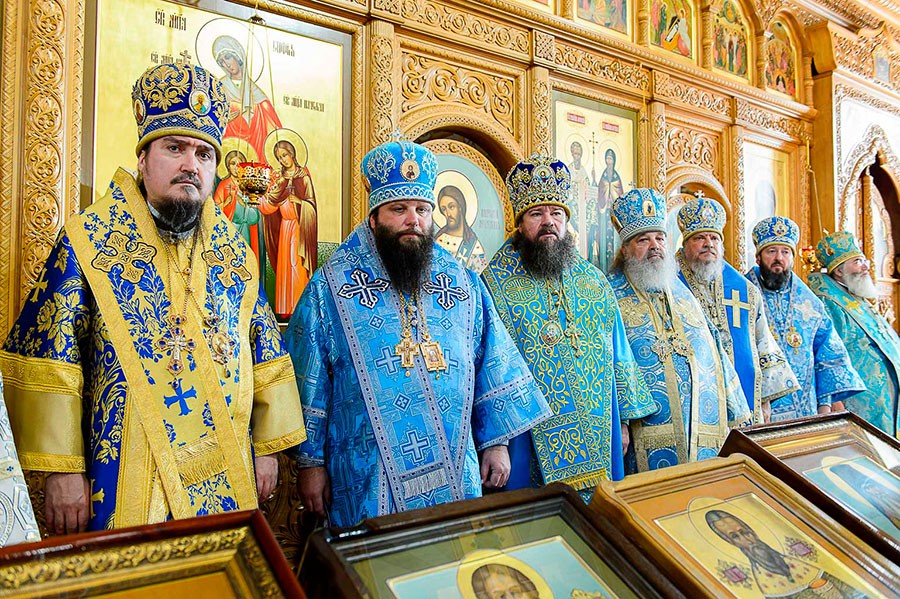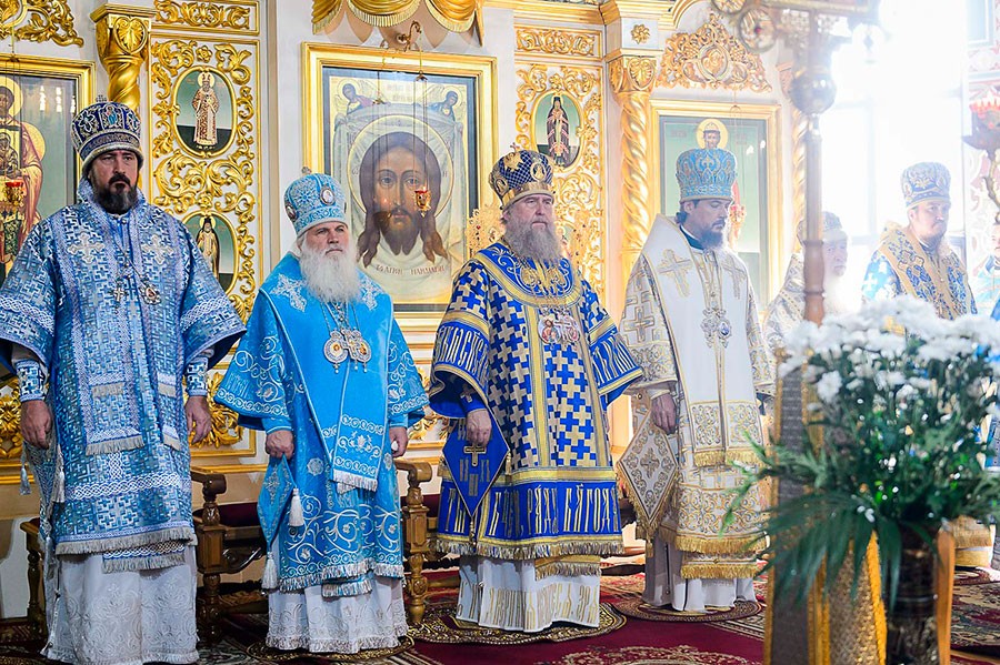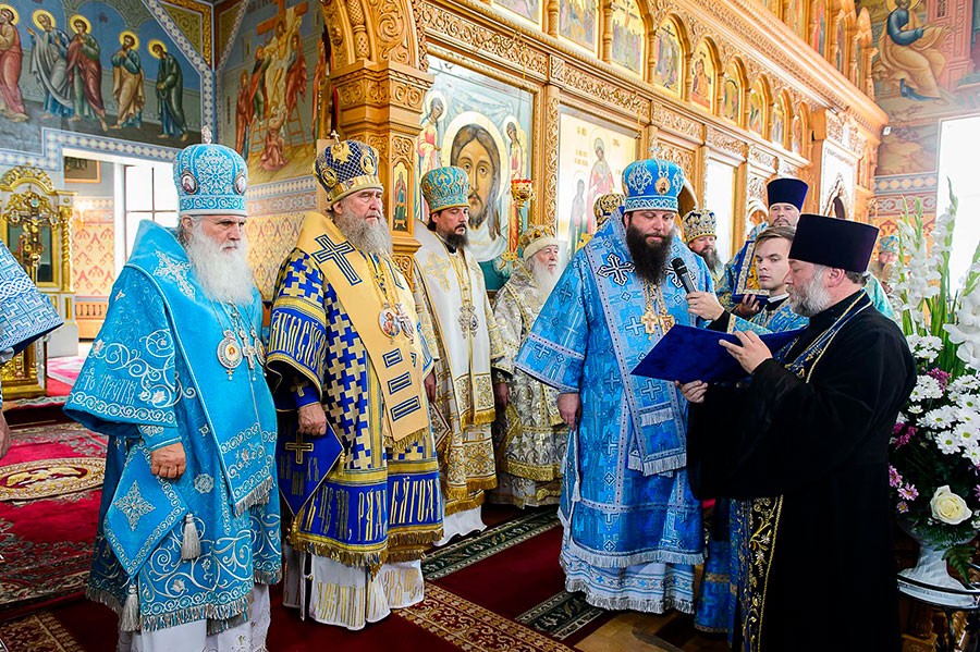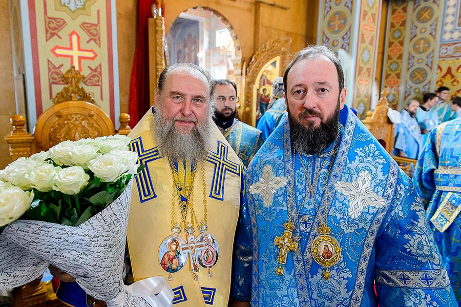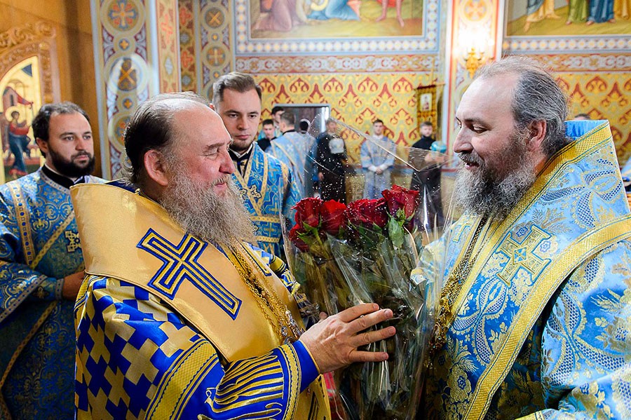 Предстоятелю Православной Церкви Казахстана сослужили: глава Среднеазиатского митрополичьего округа митрополит Ташкентский и Узбекистанский Викентий; Патриарший экзарх Юго-Восточной Азии митрополит Сингапурский и Юго-Восточно-Азиатский Сергий; митрополит Улан-Удэнский и Бурятский Савватий; архиепископ Уральский и Актюбинский Антоний; архиепископ Чимкентский и Таразский Елевферий; архиепископ Вроцлавский и Щецинский Георгий, ординарий Военного ордината Войска польского (Польская Православная Церковь); викарий Астанайской епархии епископ Талдыкорганский Нектарий; управляющий делами Православной Церкви Казахстана епископ Каскеленский Геннадий; епископ Павлодарский и Экибастузский Варнава; епископ Единецкий и Бричанский Никодим (Православная Церковь Молдовы); епископ Карагандинский и Шахтинский Севастиан; епископ Усть-Каменогорский и Семипалатинский Амфилохий; епископ Тихвинский и Лодейнопольский Мстислав; епископ Яранский и Лузский Паисий; епископ Бишкекский и Кыргызстанский Даниил; епископ Кокшетауский и Акмолинский Серапион; епископ Саянский и Нижнеудинский Алексий; епископ Петропавловский и Булаевский Владимир; викарий Восточно-Американской епархии епископ Манхэттенский Николай (Русская Православная Церковь Заграницей); епископ Клинцовский и Трубчевский Владимир; викарий Киевской епархии епископ Барышевский Виктор (Украинская Православная Церковь).