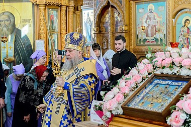 Праздничная Божественная литургия была совершена в Софийском соборе Иверско-Серафимовского женского монастыря, под сводами которого с вечера 4 октября пребывает чудотворный Курский-Коренной образ Царицы Небесной. По благословению Святейшего Патриарха Московского и всея Руси Кирилла принесение великой святыни православия в пределы Казахстанского митрополичьего округа осуществляется с 4 по 11 октября.