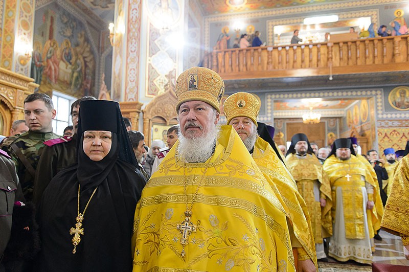 На сугубой ектении возглашались прошения о единстве святого православия, была вознесена молитва о мире и преодолении междоусобной брани на Украине.