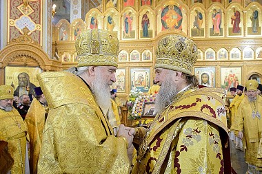 По традиции иерархи, священнослужители, хор и все участники богослужения пропели «Вечную память» старцу-святителю митрополиту Иосифу (Чернову) у его гробницы, расположенной в южном приделе храма.