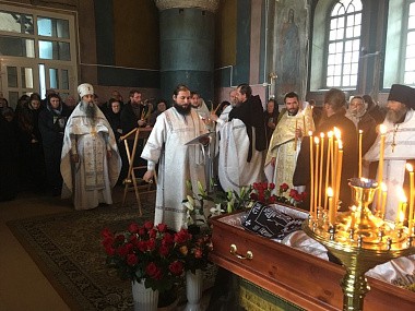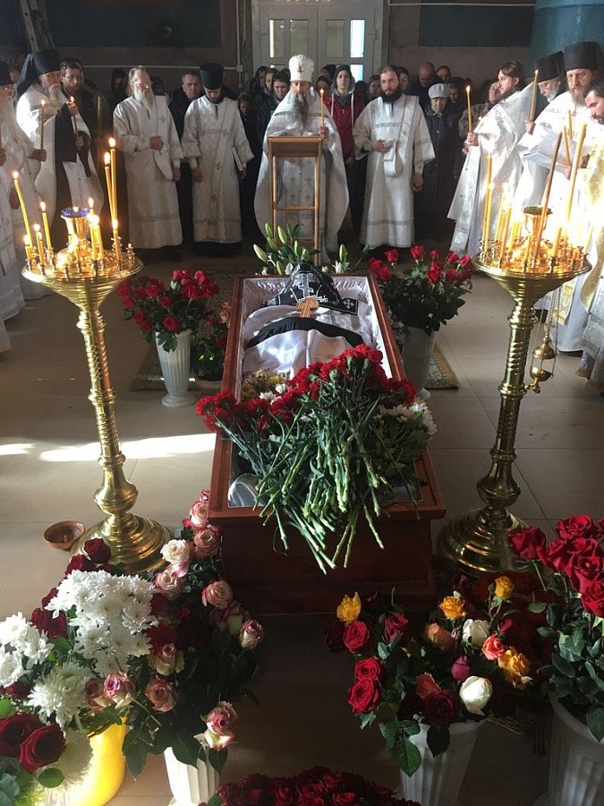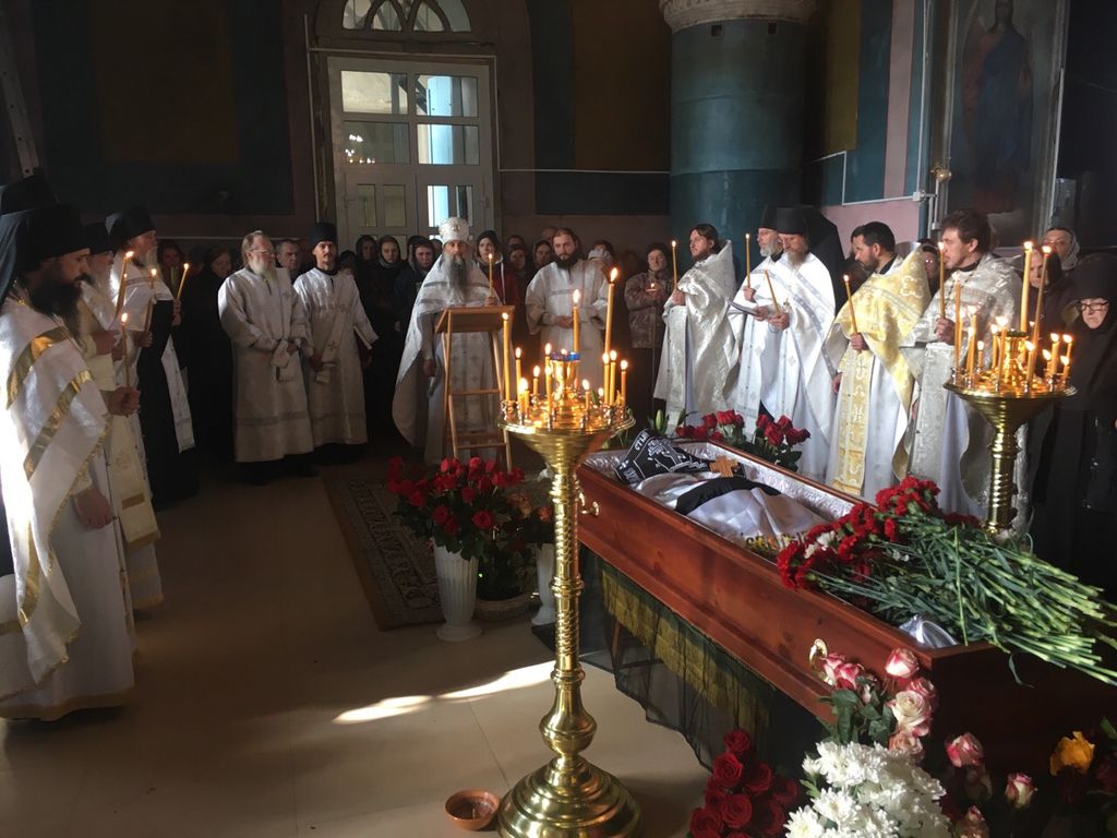 Заупокойная лития и захоронение были совершены на Архиерейском подворье при бывшем Лютиковом монастыре, первым настоятелем которого являлся покойный иеросхимонах Зосима (Ветров).