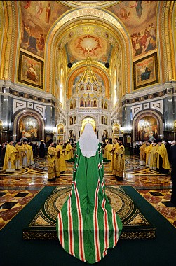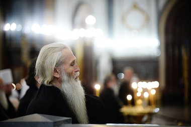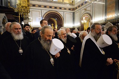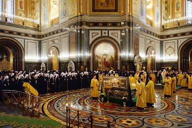 К началу Собора в Храм Христа Спасителя из Донского ставропигиального мужского монастыря были принесены честные мощи святителя Тихона, Патриарха Московского.