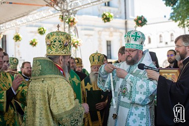 По отпусте Литургии было возглашено многолетие Блаженнейшему митрополиту Онуфрию. Приветственное слово Святейшего Патриарха Московского и всея Руси Кирилла зачитал митрополит Сингапурский Сергий.