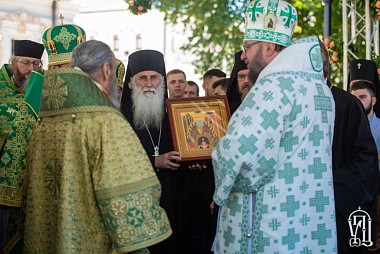 После чтения Евангелия Предстоятель Украинской Православной Церкви обратился к верующим с архипастырским словом. Блаженнейший владыка рассказал о житии своего небесного покровителя преподобного Онуфрия Великого, а также объяснил духовное значение подвига святых пустынножителей для мира.