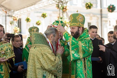 Его Блаженству сослужили: митрополит Одесский и Измаильский Агафангел, митрополит Хустский и Виноградовский Марк, митрополит Донецкий и Мариупольский Иларион, митрополит Каменец-Подольский и Городокский Феодор, наместник Лавры митрополит Вышгородский и Чернобыльский Павел, управляющий делами Украинской Православной Церкви митрополит Бориспольский и Броварской Антоний, Патриарший экзарх Юго-Восточной Азии митрополит Сингапурский и Юго-Восточно-Азиатский Сергий, митрополит Днепропетровский и Павлоградский Ириней, митрополит Тульчинский и Брацлавский Ионафан, митрополит Ровенский и Острожский Варфоломей, митрополит Тернопольский и Кременецкий Сергий, Патриарший экзарх Западной Европы митрополит Корсунский и Западноевропейский Антоний, архиереи и духовенство Украинской Православной Церкви.