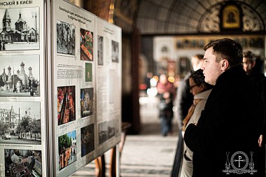 В продолжение научного форума 8 февраля в Трапезной палате храма Антония и Феодосия Печерских состоялось открытие выставки, которая проходит под тем же названием, что и состоявшаяся конференция: «Церковь мучеников: гонения на веру и Церковь в ХХ веке».