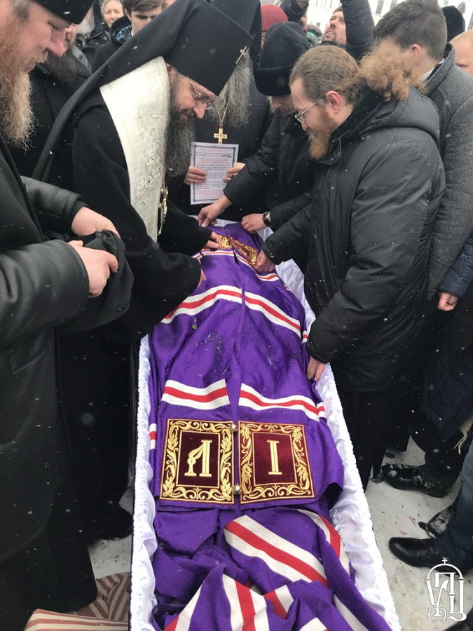 Заупокойную литургию и отпевание, по благословению Блаженнейшего митрополита Киевского и всея Украины Онуфрия возглавил наместник обители митрополит Вышгородский и Чернобыльский Павел.