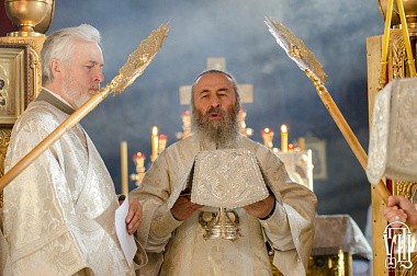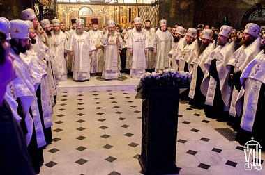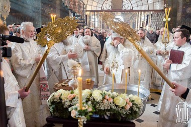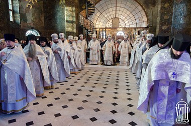 Его Блаженству сослужили наместник обители митрополит Вышгородский и Чернобыльский Павел, архиепископ Бучанский Пантелеимон, архиепископ Макаровский Иларий, епископ Гостомельский Тихон и духовенство обители.